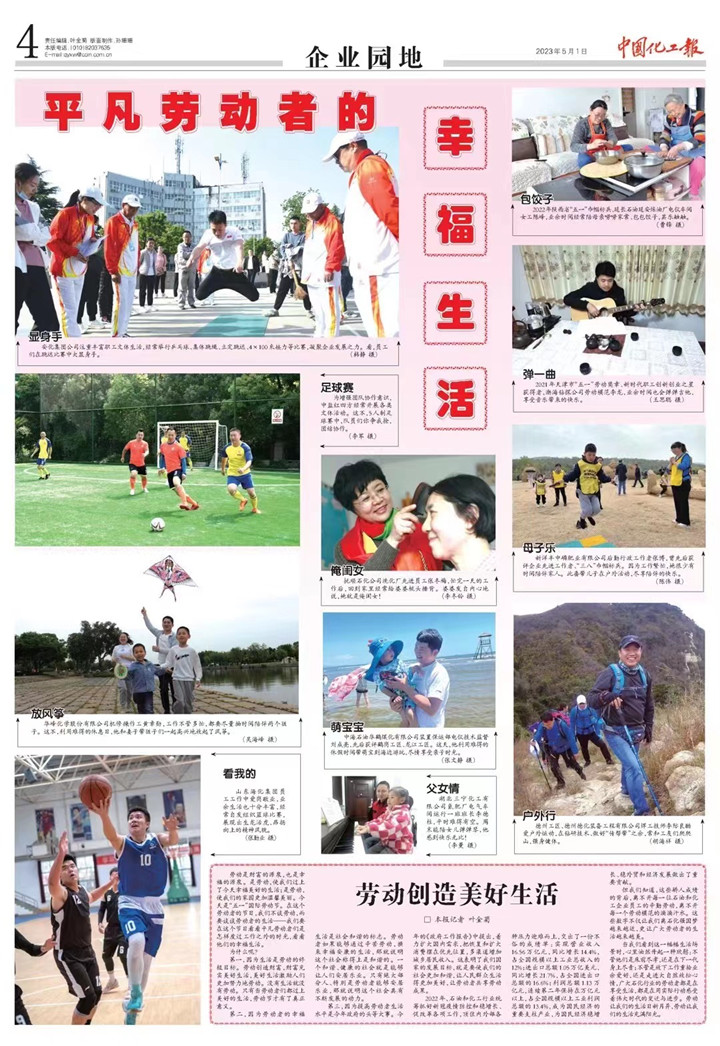 5月1日,企業(yè)管理部拍攝的“浙江最美工匠黃章勛全家幸福照”,被《中國(guó)化工報(bào)》刊發(fā),公司工匠的美好生活畫(huà)面得到傳播。