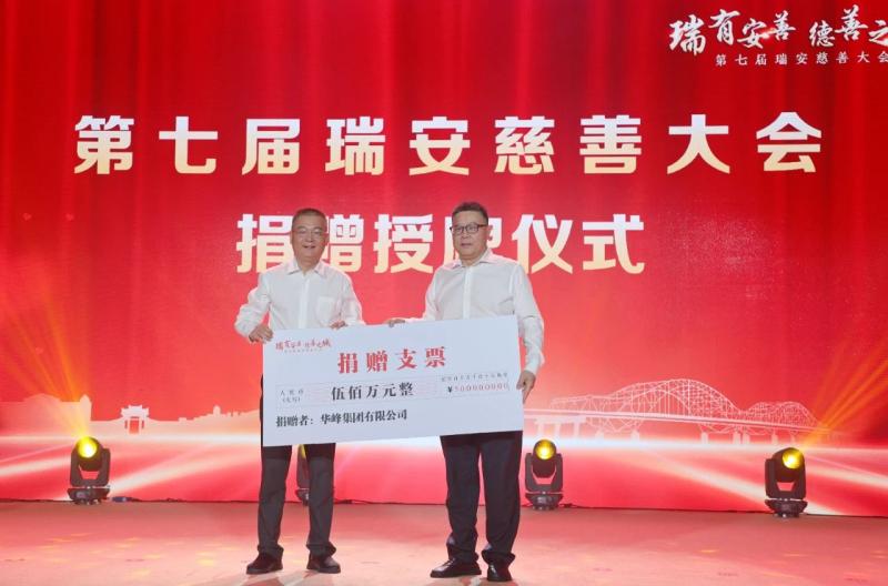 5月10日上午,第七屆瑞安市慈善大會在瑞安市政會議中心大會堂隆重舉行。華峰集團總裁林建一、集團高級副總裁尤金煥應(yīng)邀出席大會。會上,華峰集團榮獲“慈善事業(yè)突出貢獻獎”,并再次為慈善事業(yè)捐贈500萬元,彰顯社會責(zé)任擔(dān)當(dāng)。