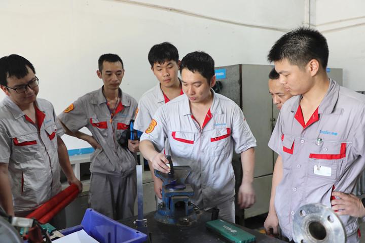 在省級(jí)職工創(chuàng)新工作站里,像黃章勛這樣的“知名”工匠還有不少,全國(guó)優(yōu)秀農(nóng)民工薛孝西、浙江省青年工匠黃琪……其中,憑著強(qiáng)勁實(shí)力斬獲工作站兩期金牌攻擂手稱(chēng)號(hào)的葉昌其就是一名一線工匠佼佼者。提到葉昌其時(shí),班長(zhǎng)張萬(wàn)亮對(duì)他贊賞連連,“人很勤勞,對(duì)自己有要求,而且非常樂(lè)于分享自己的經(jīng)驗(yàn)。”葉昌其還以自己的知識(shí)和技能,推進(jìn)工作站技能整體提升,對(duì)前來(lái)交流討教的同事,總是來(lái)者不拒。